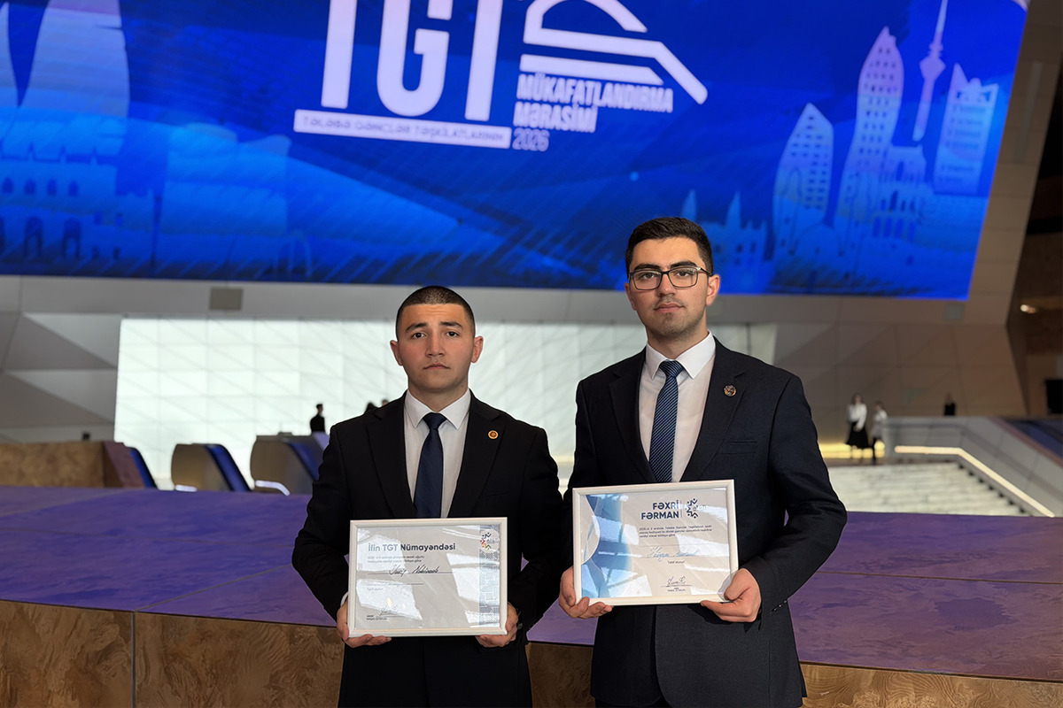 Qeyd edək ki, tələbə gənclər təşkilatlarının mükafatlandırma mərasimi Bakı Konqres Mərkəzində keçirilib. Tədbirdə 2025-ci il ərzində fəaliyyəti və təşəbbüskarlığı ilə fərqlənən TGT sədrləri və nümayəndələri müxtəlif nominasiyalar üzrə mükafatlandırılıblar.