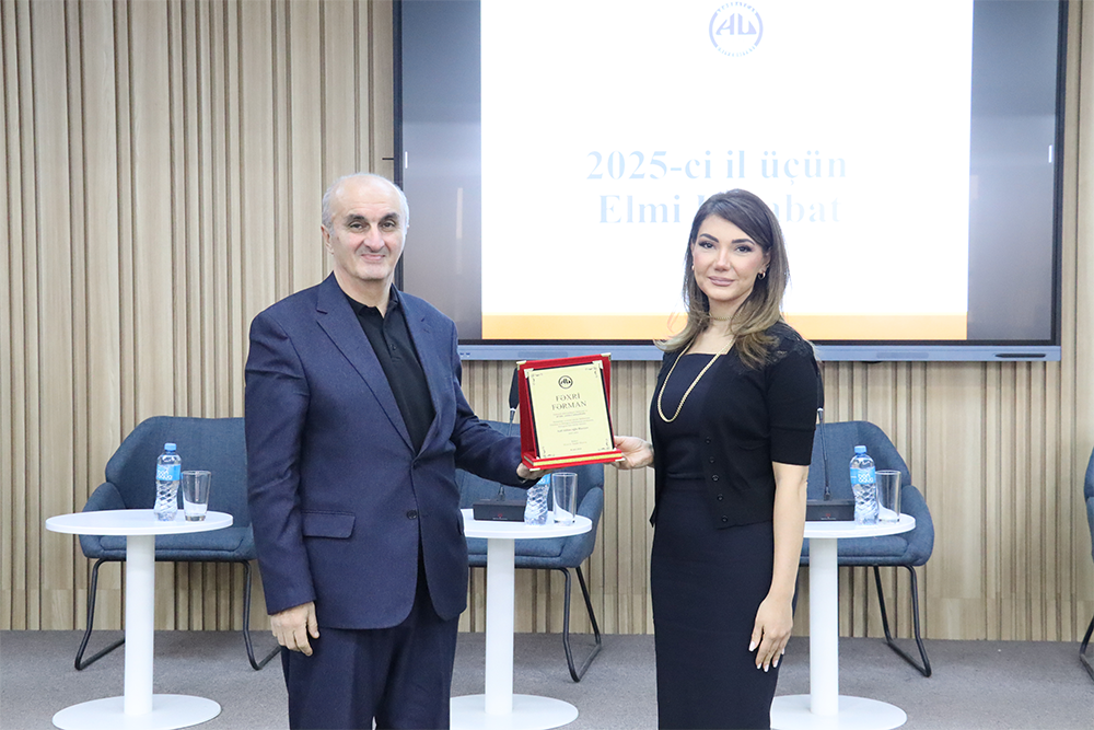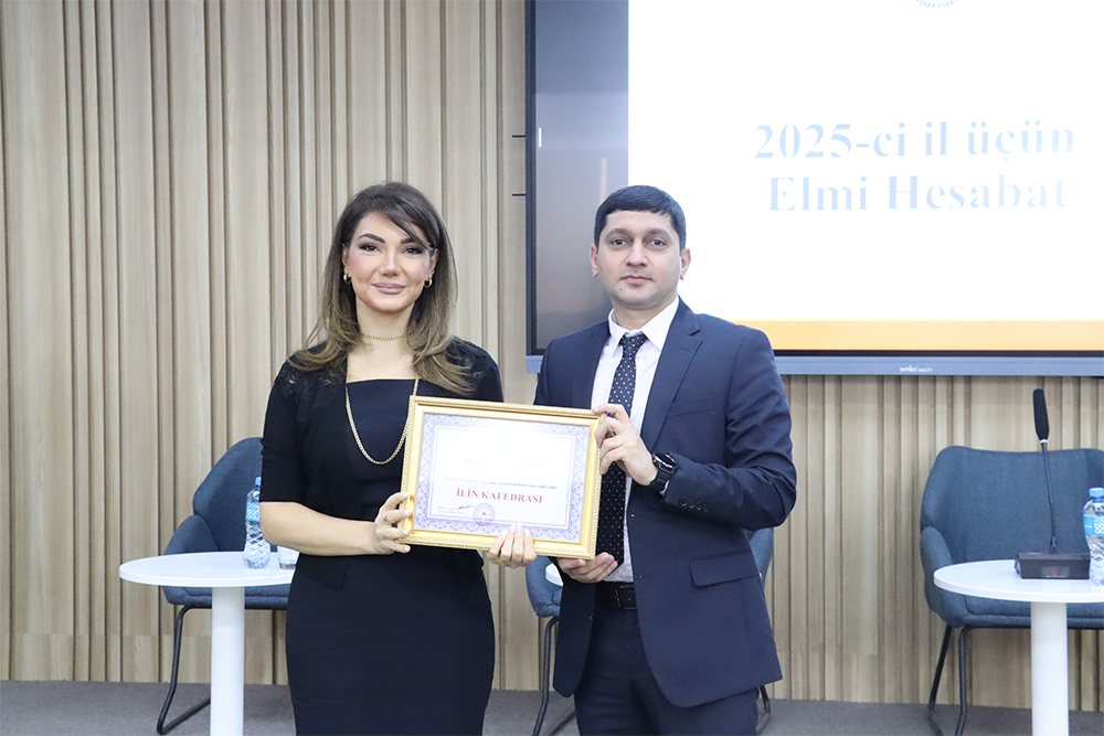 Siyasi və ictimai elmlər kafedrasının müdiri, siyasi elmlər üzrə fəlsəfə doktoru, dosent Elvin Talışınskiyə “İlin kafedrası” sertifikatını və fəxri fərmanları universitetin rektoru Səadət Əliyeva təqdim edib. Rektor təltiflərə layiq görülən universitet əməkdaşlarını təbrik edib, onlara gələcək fəaliyyətlərində uğurlar arzulayıb.