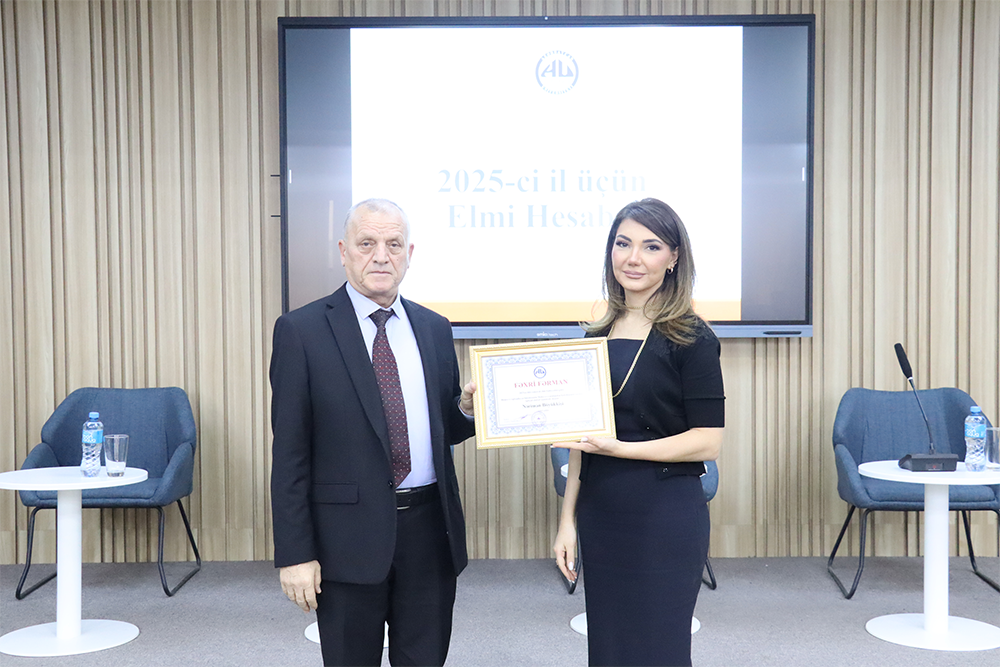 İclasın sonunda Elm şöbəsinin hesabatı yekdilliklə qəbul olunub və hesabat ili ərzində elmi nailiyyətləri ilə fərqlənən kafedra və universitet əməkdaşları təltif olunub. Siyasi və ictimai elmlər kafedrası əməkdaşlarının yüksək elmi fəaliyyət göstəricilərinə görə “İlin kafedrası” elan olunub. Tərcümə və filologiya kafedrasının professoru, filologiya üzrə elmlər doktoru Asif Hacıyev səmərəli elmi-pedaqoji fəaliyyəti və 65 illik yubileyi münasibətilə, Riyaziyyat və informatika kafedrasının dosenti, riyaziyyat üzrə fəlsəfə doktoru Cavanşır Kazımov səmərəli elmi-pedaqoji fəaliyyəti və 75 illik yubileyi münasibətilə, Siyasi və ictimai elmlər kafedrasının dosenti, tarix üzrə fəlsəfə dokoru Şahismayıl İsmayılov 2025-ci ildə yüksək elmi nəticə göstərdiyinə görə, Maliyyə və mühasibat kafedrasının müdiri, iqtisad elmləri namizədi, dosent Nəriman Böyükkişi səmərəli elmi fəaliyyətinə görə rektorun Fəxri Fərmanı ilə təltif olunublar.