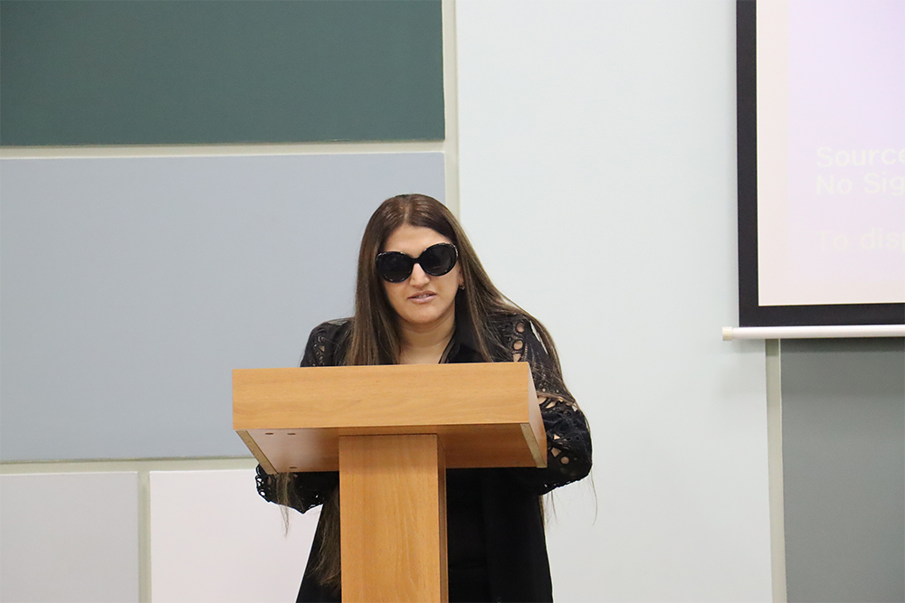 Tədbirin qonağı, Azərbaycan Universitetinin magistrantı və əlilliyi olan şəxs Fidan Hacıyeva-Ağazadə öz şəxsi təcrübəsini bölüşərək qarşılaşdığı çətinliklər, motivasiya mənbələri və mübarizə strategiyaları haqqında danışıb. O, əmək bazarında əlilliyi olan şəxslərin üzləşdiyi çətinliklər, cəmiyyətin münasibətində mövcud boşluqlardan söz açaraq bildirib ki, mühitin əlçatanlığı, infrastrukturun inklüzivliyi və cəmiyyətin dəstəyi onların sosial inteqrasiyası və məşğulluğunun təminində həlledici rol oynayır.