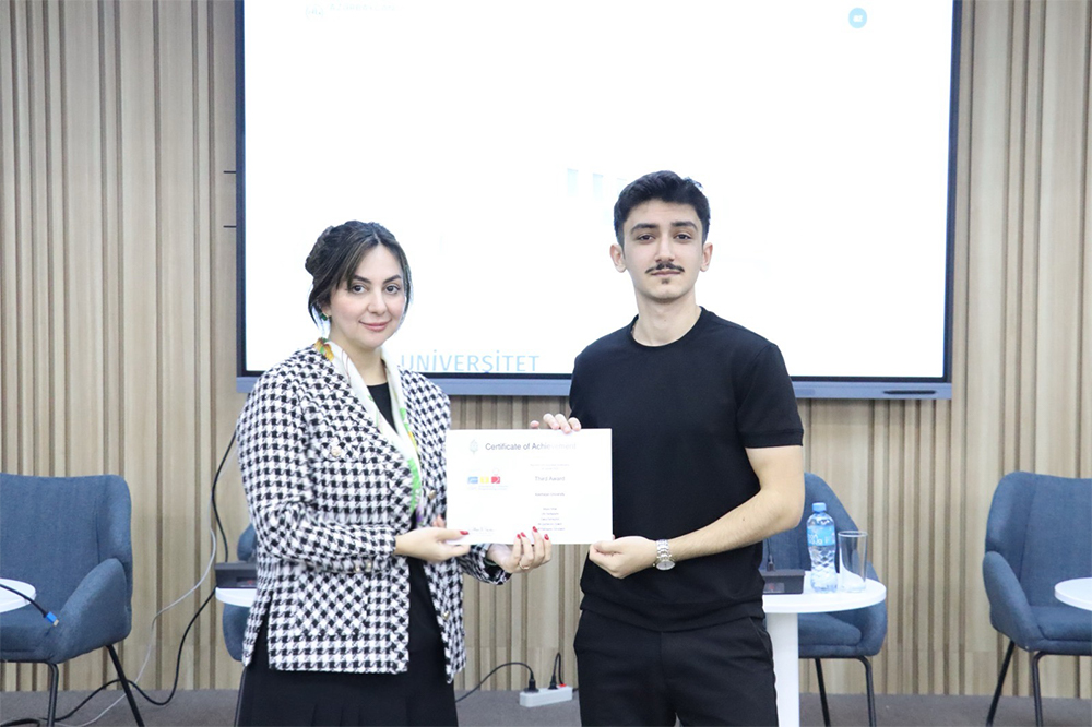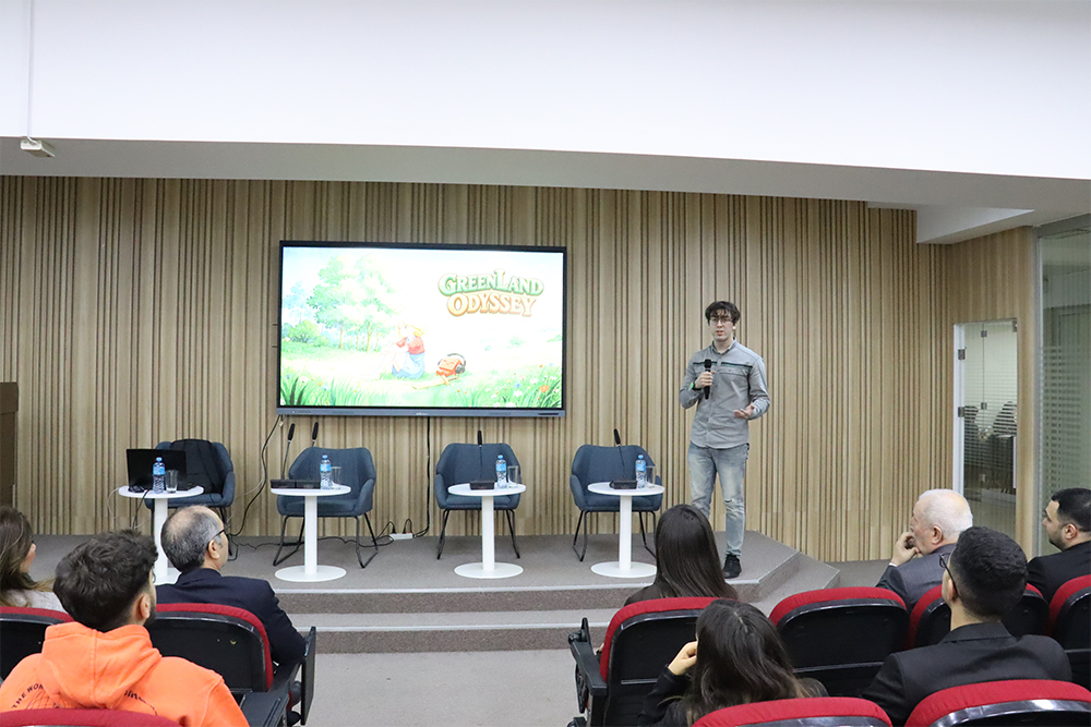 Ardınca İKT fakültəsinin İnformasiya texnologiyaları ixtisası üzrə 4-cü kurs tələbəsi Murad Mirzəyev yaratdığı oyun proqramı haqqında təqdimatla çıxış edib. Təqdimatda oyun ideyasının ortaya çıxması və formalaşması, oyunun strategiyası, personajları və texniki xüsusiyyətləri barədə geniş məlumat verən tələbənin çıxışı tədbir iştirakçılarının böyük marağına səbəb olub. Oyun prosesinin məntiqi ardıcıllığı, tələbənin təqdimat zamanı nümayiş etdirdiyi vizual materiallar və prototip təqdimatı layihənin peşəkarlıq səviyyəsini ortaya qoyub.