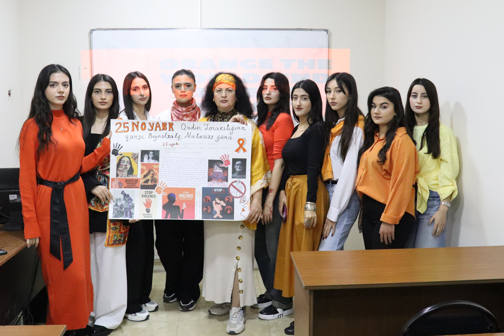 Azərbaycan Universitetinin Humanitar və sosial elmlər fakültəsinin Regionşünaslıq ixtisası üzrə təhsil alan II kurs tələbələri Sosial-siyasi antropologiya fənni çərçivəsində 25 Noyabr – Qadınlara qarşı Zorakılıqla Beynəlxalq Mübarizə Gününə həsr olunmuş tədbirdə iştirak ediblər. Tədbir Azərbaycan Universitetinin Sosial işin təşkili kafedrasının müəllimi, fəlsəfə üzrə fəlsəfə doktoru, dosent Rəna Məmmədovanın təşəbbüsü ilə təşkil olunub.