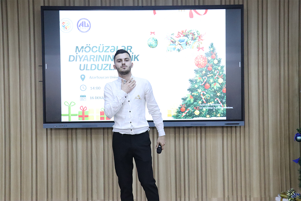 Azərbaycan Universitetində “Azərbaycan Uşaqları” İctimai Birliyinin nəzdində fəaliyyət göstərən sosial xidmət müəssisəsi Uşaq Sığınacağı və Reinteqrasiya Mərkəzinin sakinləri üçün Yeni il şənliyi keçirilib. “Möcüzələr diyarının kiçik ulduzları” adlı şənlik universitetin “Sossfera” Sosial İnkişaf Klubu və ictimai birliyin birgə təşəbbüsü ilə təşkil olunub. Sosial məsuliyyət, sevgi və həmrəylik ruhunda təşkil olunan tədbir uşaqlar üçün əsl bayram ab-havası yaradıb.