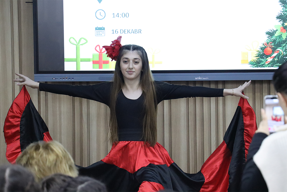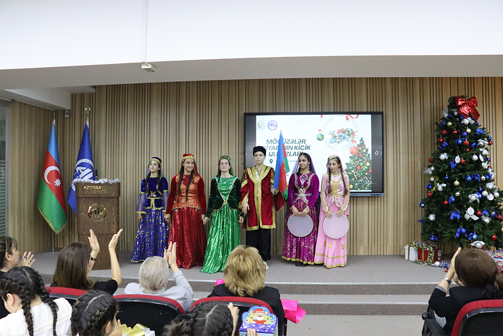 Tədbir bədii hissə ilə davam edib. Mərkəzin sakini olan uşaqların ifa etdiyi milli və xarici rəqslər, şeir və musiqi nömrələri, səhnə kompozisiyaları tədbirə xüsusi rəng qatıb. Şaxta Baba və Qar Qızın səhnəyə çıxışı tədbirin ən sevilən və ən çox alqış alan anlarından olub. Şaxta Baba və Qar Qız uşaqlara bayram hədiyyələrini verib, onlarla birlikdə yeni il ağacının ətrafında rəqs ediblər. Universitetin müəllim və tələbələri, o cümlədən mərkəzin əməkdaşları da uşaqlara qoşulub, onların sevincinə şərik olublar.