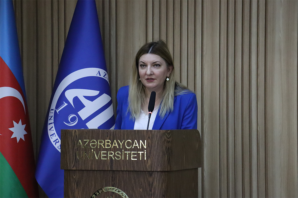 Daha sonra Türkiyənin “Evimdeki Psikolog” platformasının mütəxəssisi, uzman psixoloq-psixoterapevt Səbinə Bayramova “Sosial işdə psixoloji xidmətin rolu” mövzusunda təqdimatla çıxış edib. O, psixologiya və sosial iş arasında qarşılıqlı əlaqələr, hər iki sahənin cəmiyyətdəki rolu və bu peşələrə aid funksiyalar barədə məlumat verib.