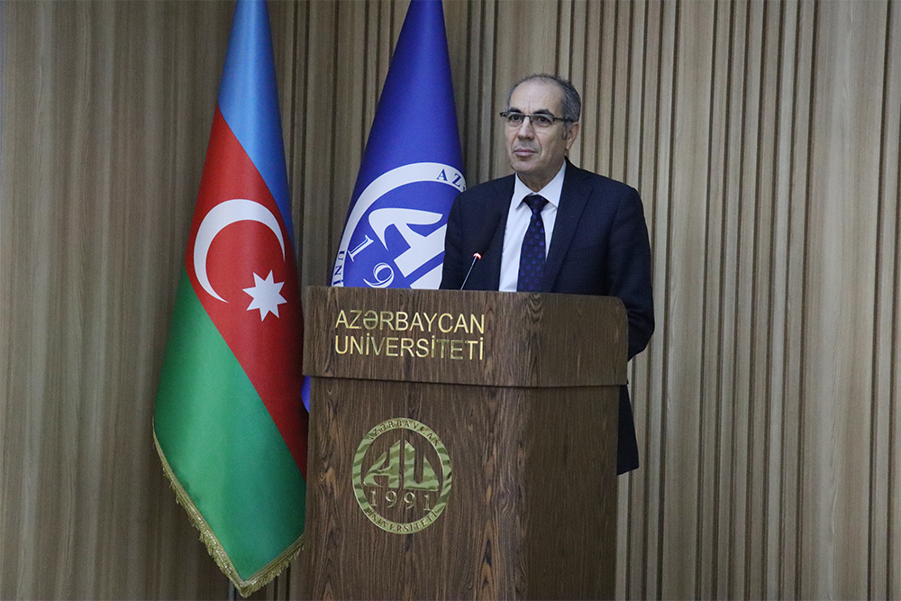 Universitetin elmi işlər üzrə prorektoru Yusif Qasımov tədbirdə açılış nitqi ilə çıxış edərək, Azərbaycanın Qarabağ Zəfərinin böyük geosiyasi hadisə olduğunu vurğulayıb. Prorektor bildirib ki, bu möhtəşəm Zəfər ölkədə illər boyu aparılmış ardıcıl iqtisadi siyasətin, ordu quruculuğu sahəsində atılan qətiyyətli addımların, ölkə başçısı, Müzəffər Ali Baş Komandan İlham Əliyevin diplomatik məharətinin, prinsipial mövqeyinin, sərkərdəliyinin, Azərbaycan əsgərinin igidliyinin, andına, dövlətinə və xalqına sədaqətinin məntiqi nəticəsidir. Tarixi Zəfərin qazanılmasında Azərbaycan xalqının birliyi, Vətən sevgisi, həmçinin genetik yaddaşı da mühüm rol oynayıb. Azərbaycanın ədalətli mövqeyi və beynəlxalq hüquqa əsaslanan mübarizəsi bu gün regionda sülhün və sabitliyin əsas təminatına çevrilib