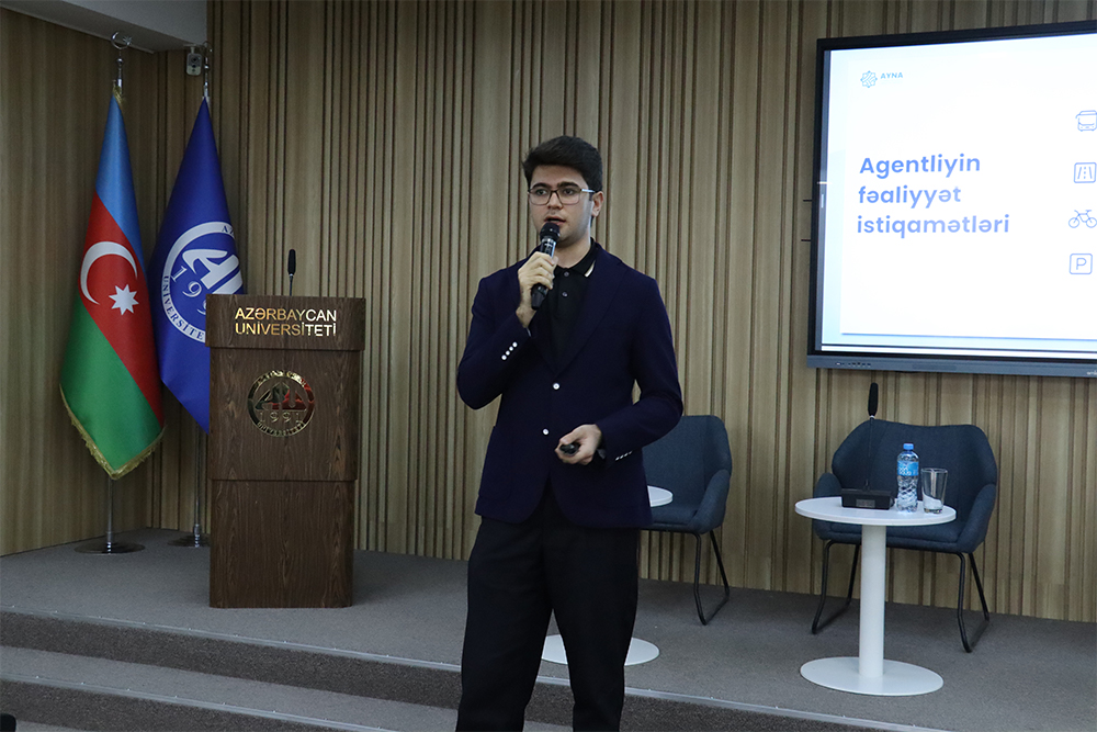 Tədbirin birinci hissəsində AYNA-nın Kommunikasiya departamentinin böyük mütəxəssisi Ruhlan Əbülfəzzadə “Universitet mühitində mikromobillik mədəniyyəti” mövzusunda təqdimatla çıxış edib. Təqdimatda agentliyin yaranması, fəaliyyət istiqamətləri, mikromobillik anlayışı haqqında məlumat verilib, maraqlı faktlar təqdim olunub. Agentliyin əməkdaşı təqdimatın ardından tələbələrlə mikromobillik mədəniyyətinin formalaşdırılması, təhlükəsiz hərəkət vərdişlərinin gücləndirilməsi və mövcud infrastruktur barədə fikir mübadiləsi aparıb, sualları cavablandırıb.