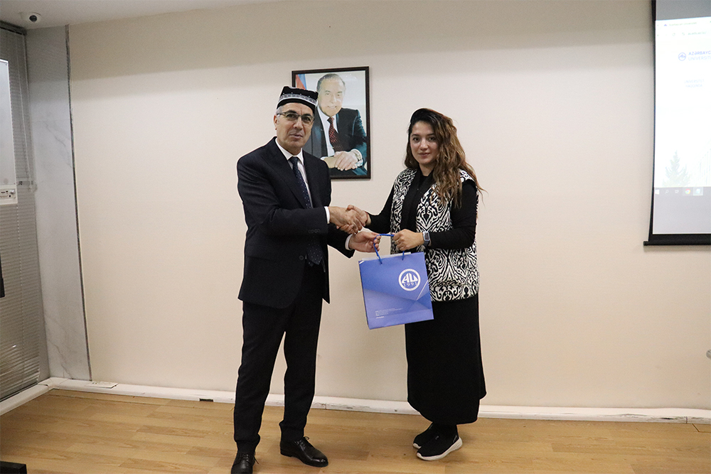 Azərbaycan Universitetində Özbəkistanın Daşkənt Dövlət İqtisad Universitetinin nümayəndə heyəti ilə əməkdaşlıq imkanlarının müzakirə olunduğu işgüzar görüş keçirilib. Görüşdə Daşkənd Dövlət İqtisad Universitetini Pedaqoji kadrların yenidən hazırlanması və ixtisasının artırılması mərkəzinin direktoru Narboy Karimov, Beynəlxalq əlaqələr şöbəsinin müdiri Zukhra Babaeva, baş mühasib Mirzoulug Abdusalomov, şöbə müdiri Farida Xamidova, baş elmi işçi Shakhzod Saadullaev, metodist Jamol Bobozhonov, Azərbaycan Universitetini isə elmi işlər üzrə prorektor Yusif Qasımov, rektorun müşaviri, Beynəlxalq Magistratura və Doktorantura Mərkəzinin direktoru Nüşabə Quliyeva, Beynəlxalq əlaqələr şöbəsinin müdiri Elmira İsmayılova təmsil edib.
