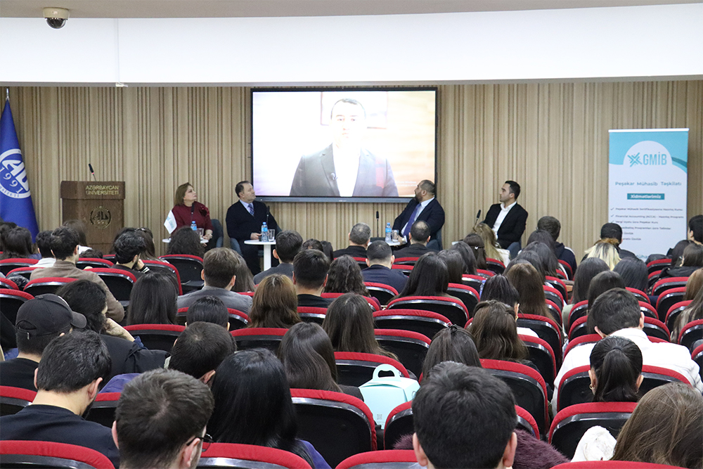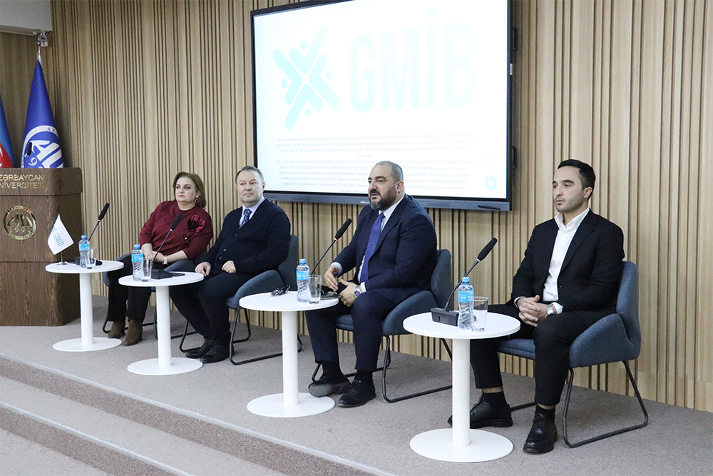 Azərbaycan Universitetinin Biznes və iqtisadiyyat fakültəsinin IV kurs tələbələri üçün “Karyera planlaması” fənni çərçivəsində Gənc Mühasiblər İctimai Birliyinin (GMİB) nümayəndələri ilə görüş təşkil olunub. Tədbirdə Gənc Mühasiblər İctimai Birliyinin sədri Solmaz Əliyeva çıxış edərək, birliyin yaranması və fəaliyyəti haqqında məlumat verib. Sədr bildirib ki, 2000-ci ildə fəaliyyətə başlayan GMİB mühasibatlıq sahəsində ixtisaslaşmış kadrların hazırlanmasına, işsiz və işaxtaran gənclərin məşğulluğunun təmin edilməsinə dəstək göstərir. Birlik 2019-cu ildə Azərbaycan Respublikası Maliyyə Nazirliyinin müvafiq qərarı ilə “Peşəkar Mühasib Təşkilatı” statusuna layiq görülüb. 2014-cü ildə birliyin nəzdində “GMB Klaster Konsaltinq” MMC təsis edilib.