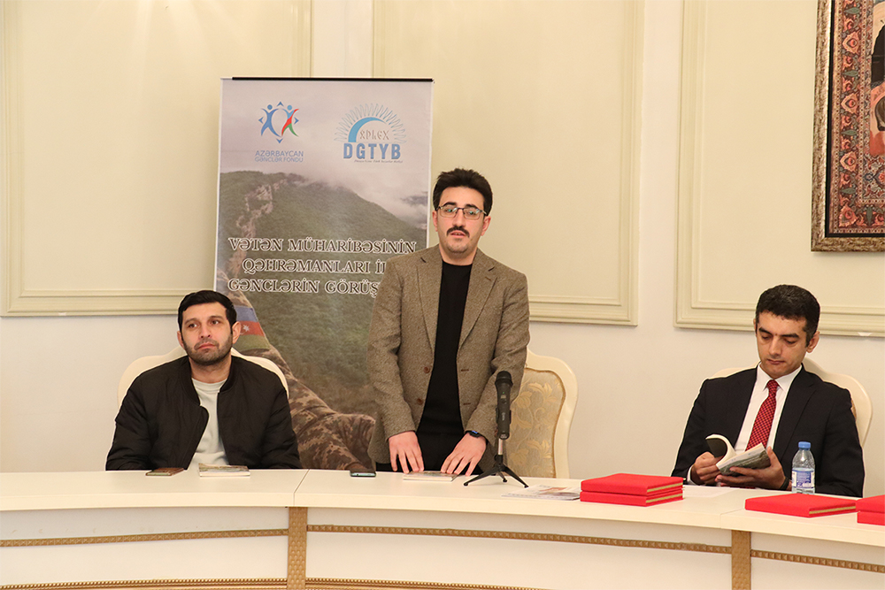 44 günlük Vətən müharibəsinin iştirakçısı, layihə çərçivəsində çap olunmuş kitabın həmmüəllifi və şair Kərəm Aydın çıxış edərək müharibə haqqında xatirələrini bölüşüb, şeirlər səsləndirib, gənclərin suallarını cavablandırıb.