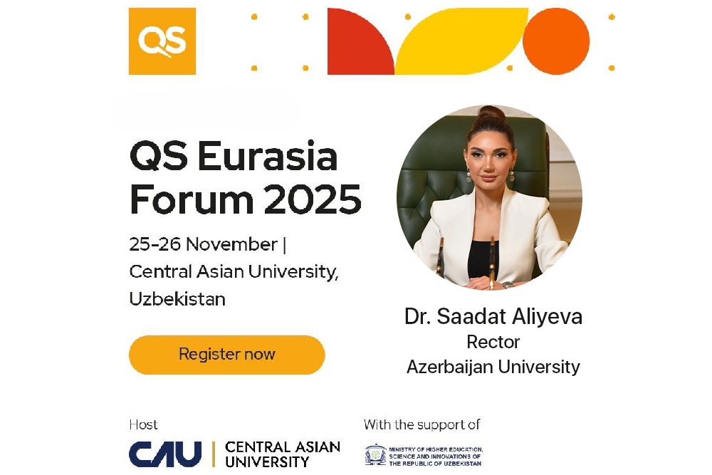Azərbaycan Universitetinin rektoru, filologiya üzrə fəlsəfə doktoru Səadət Əliyeva 25-26 noyabr 2025-ci il tarixlərində Özbəkistanın paytaxtı Daşkənd şəhərində keçiriləcək “QS Avrasiya Forumu 2025 “ tədbirində çıxış edəcək.