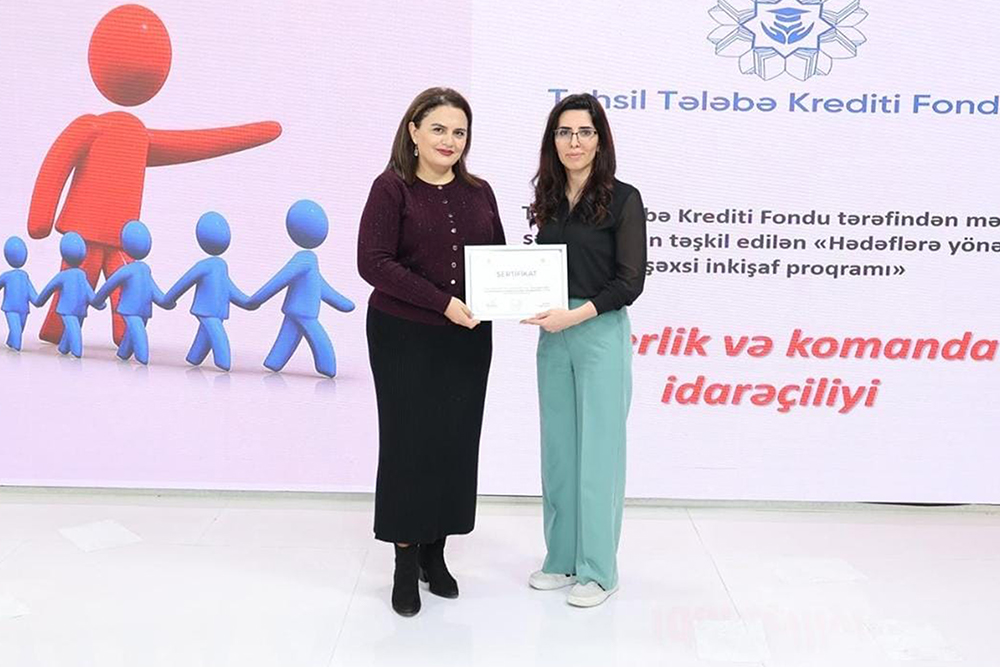 Azərbaycan Universitetinin akademik məsləhətçiləri Aysel Həmidova, Elzadə Sadiqova və Əsmər Nüsrətli Təhsil Tələbə Krediti Fondunun (TTKF) təşkilatçılığı ilə keçirilən “Təhsil tələbə kreditləri üzrə məlumatlandırma və peşəkar bacarıqların təkmilləşdirilməsi” mövzusunda təlimdə iştirak ediblər.