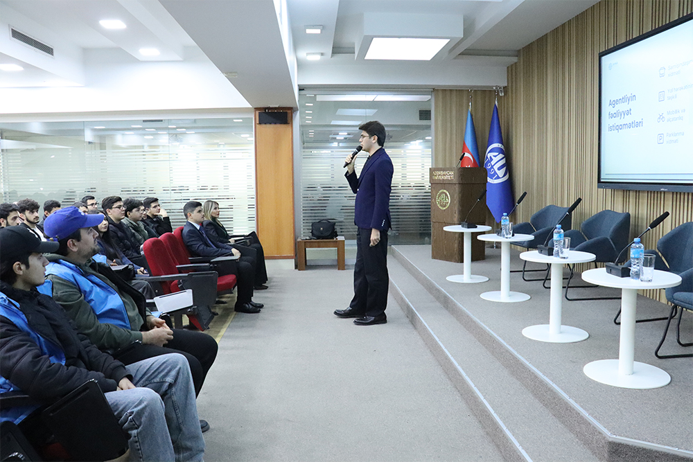 Tədbirin birinci hissəsində AYNA-nın Kommunikasiya departamentinin böyük mütəxəssisi Ruhlan Əbülfəzzadə “Universitet mühitində mikromobillik mədəniyyəti” mövzusunda təqdimatla çıxış edib. Təqdimatda agentliyin yaranması, fəaliyyət istiqamətləri, mikromobillik anlayışı haqqında məlumat verilib, maraqlı faktlar təqdim olunub. Agentliyin əməkdaşı təqdimatın ardından tələbələrlə mikromobillik mədəniyyətinin formalaşdırılması, təhlükəsiz hərəkət vərdişlərinin gücləndirilməsi və mövcud infrastruktur barədə fikir mübadiləsi aparıb, sualları cavablandırıb.